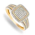 Put a sparkle in someone’s eye as well as on their finger with this over-the-top yet perfectly elegant ring. Crafted in 9ct yellow Gold, it features a cushion-shaped cluster of Diamonds and a sparkling triple band.