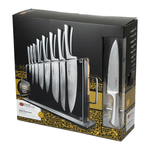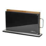 A superior knife collection designed for enduring strength, performance and sharpness. Features a bonus magnetic acacia wood chopping board for slicing and dicing fresh ingredients. Japanese steel blades offer exceptional performance and quality as the blade has been tapered to allow for a thinner and more precise cutting edge. Inspired by traditional Japanese craftsman and Samurai sword makers, these knives are characterised by distinctive patterns on the blade of banding and mottling, reminiscent of flowing water.