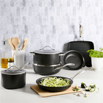 Bring out your inner master chef and tackle all your favourite recipes from your most-admired chefs with a full set of saucepan, frypan, skillet, pots and casserole. Please see product information.