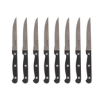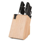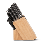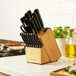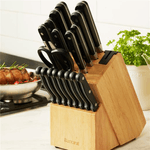 •Set includes a chef's knife, bread knife, 18cm and 15cm santoku knife, carving knife, boning knife, utility knife, paring knife, 8 steak knives, all purpose kitchen scissors and wooded knife block.