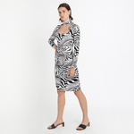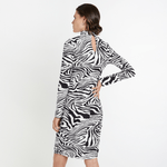 Opt for a sassy look wearing this Bodycon Dress with Cut Out Detail. Long sleeves, High neck, Cut out detail, Animal print, Bodycon fit