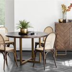 Create a stylish and inviting dining area with the Bruno table range. The effortless Scandi style of Bruno's herringbone acacia wood panelling and slim brass metal frame make a statement in your space.