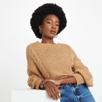 Layer your look with this Cable Knit Crew Neck Jersey. Wear this cropped knit with high-waisted jeans or pants layered over a cropped tee for warmth and wedge sneakers for a cute and cosy casual fit.