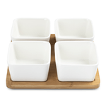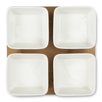 Another reason to look forward to entertaining at home again. This serving tray of 4 bowls in contemporary square shape can be used to serve a variety of snacks or dips when hosting dinners, drinks or casual get togethers at home.