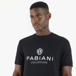This Fabiani Collezione Short Sleeve Sweat T-Shirt in Black is made from lightweight cotton in a sportswear-inspired design that draws on the classic look of a crewneck sweat top. This short sleeve tee features ribbing on the sleeve edge and hem and the signature triangle insert detail at the neckline. A white Fabiani logo on the front completes the style.
