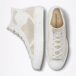 The Converse Renew Chuck 70 Engineered Knit High Top is stripped down to use less, enable movement, and fuel expression all summer long. Simplifying an 18-piece construction to only 10, a new PU outsole and foxing made with at least 12% rubber scraps from the footwear manufacturing process maintains the iconic elements while providing lightweight comfort. A 1-piece engineered knit upper is designed to provide zonal comfort, support, and breathability in easy-going colors. It all comes together with at least 20% recycled materials by weight. Supplier style is (A00454C).