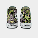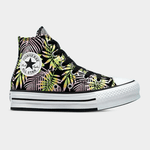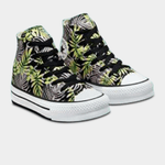 The iconic high top is transformed for kids, with softened linings, stitches, and seams, plus a lifted sole to give them the ultimate platform for self-expression. Vibrant, pop-color leaves and plants bring their love for the outdoors to classic canvas. The look is finished with Chuck Taylor All Star classics, like a rubber toe bumper, midsole stripes, and diamond pattern outsole. The supplier style is (A00446C).