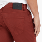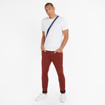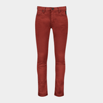 These chino trousers in burgundy has casual style details like the classic 5-pocket design and crease detail on the hip. They are crafted from a stretch cotton for a comfortable, skinny fit. Matt black hardware and black leather Fabiani branded patches on the back to complete the style.