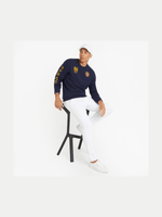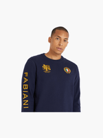 This Fabiani Crew Neck Sweat in Navy with slim fit, long sleeve style is crafted from a warm and comfortable cotton blend in a classic crew neck design. It has a ribbed neckline, cuffs and hem and features an embroidered Fabiani Lusso Sportivo logo down the arm. An embroidered Fabiani crest and FSL logo on the chest completes the look.