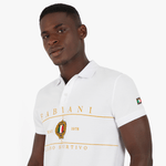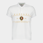 This Fabiani Box Design Polo in white offers a fresh take on a classic style. It is made from comfortable stretch cotton that is both lightweight and breathable in a slim fit style. The box design on the major parts of the polo with an embroidered Fabiani crest this simple polo, stand out style.