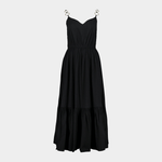 For a cool and comfortable look, this fit and flare maxi dress with gold detail straps is the perfect pick. Pair this gold detail maxi dress with chic sandals or heels. Fit and flare, V-neck, Spaghetti straps with gold detail, Elasticated waist, Maxi length, Woven viscose fabric