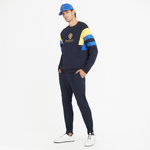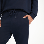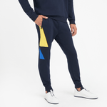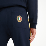 These Inset Panel Track Pants in Navy are made from 100% cotton which is lightweight and breathable yet cosy and warm with a luxurious feel. They have a slim fit with a comfortable elasticated waistband and ribbed cuffs with side pockets that complete the style.