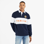 Keep warm and sporty with this FLS Check and Colourblock Rugby Jersey in Navy. This jersey in 100% cotton ensures maximum comfort with a luxurious feel. Featuring a check and colourblock detail with an embroidered crest giving it a rugby-inspired feel. Enhance this look with a skinny denim and low top sneakers.