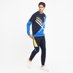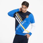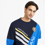 Elevate your casual style with this FLS Stripe and Colourblock Crew Swear in Navy. Made from 100% cotton which is lightweight and breathable yet cosy and warm, this sweat has a luxurious feel. Crisscross panelling and embroidered crests give it a sports-inspired feel.