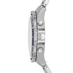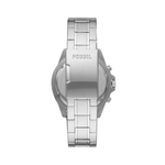 This bold Fossil silver toned men's watch features chronograph movement, a blue sundial with a rotating topring and is set in Stainless Steel. It's the ideal gift for a style-conscious man.
