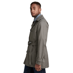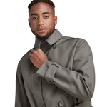 The G-Star Double Breasted Trench Coat is designed in a regular fit and features an extra layer of protection through the additional high collar. Alternatively this collar can be worn open. Flap pockets are placed at the waist, offering a hidden snap closure. This fully lined jacket has an inner pocket and a hanger loop for ease. The double front closure shows a zipper covered by a windbreaker panel and buttons.