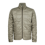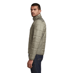 This lighter weight padded jacket is cut from a water repellant fabric, quilted in a grid structure stitch down. Offering a raised collar and reinforced waist pockets with a snap closure. Also an inner pocket is added to this zip through jacket. The elastic bindings create a comfortable finish.