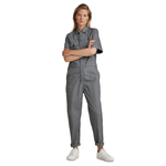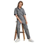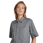 This Army Jumpsuit 2.0 is designed in a straight fit and offers a hidden snap front closure. An elasticated waist is added to the sides and proceeds towards the back. This overall shows many pockets. A single flap pocket at the chest is combined with a hidden side entry pocket at the opposite side. Waist pockets are combined with patch pockets at the back.