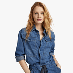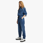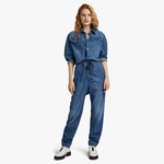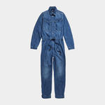 This boiler suit offers a snap button front closure, that proceeds into a concealed fly. A drawcord is added to the waist to allow for a tighter silhouette. Deep flap pockets at the chest are finished with snap buttons as well. This suit is designed with inset pockets and shows pockets at the back. The snap buttons at the sleeves and legs offer width adjustability.