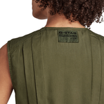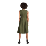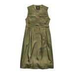 This Fit & Flare Dress is inspired by vintage scouting uniforms. Where a slim-fit pleated top is combined with a voluminous skirt. The sleeveless top offers a rounded neckline with a long placket. Chest pockets are created with a flap and hidden snaps. The skirt is also designed with pockets, these are set in the side seam. This dress has a waist strap at the back with an adjustable snap closure to tighten it further if preferred.
