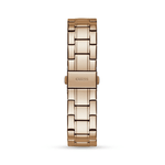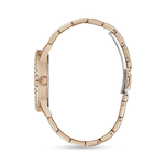 This glamorous Rose Gold toned women’s bracelet watch features a round case, Crystal-embellished bezel and glittering pink and Rose Gold toned dial.