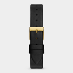 This glamorous Crystal-embellished women’s watch features a Gold Plated Stainless Steel round case, sleek black dial and back genuine leather strap.