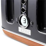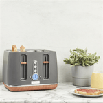The four-slice toaster features extra wide slots, convenient cancel, reheat, defrost settings, digital browning control and a removable crumb tray for easy cleaning.