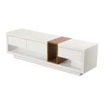For a more modern, clean living space, the Holston media unit is a cool choice. Stylish in clean white with a hint of natural wood, it is bound to be the main attraction.