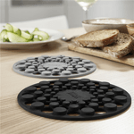 These two heat and stain-resistant circular trivets fit neatly together for compact storage.