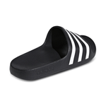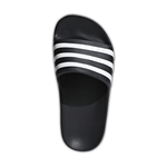 The shower-ready Junior Grade School adidas Adilette Aqua Black/White Slide have a one-piece moulded upper with 3-Stripes across the top. A soft, cloud-like footbed is made with quick-dry cushioning for easy comfort.