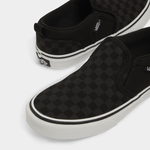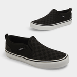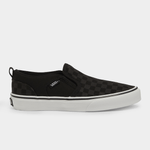 Vans Classic Slip-On that has elastic side accents and padded collars for extra comfort. It also features the Vans flag label and signature waffle outsoles for firmer grip.