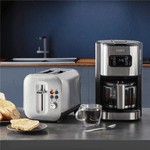 With the Krups Stainless Steel Filter Coffee maker you can enjoy delicious coffee from this elegant, premium Coffee Maker. This 1.25 litre brushed stainless steel coffee maker is equipped with a programmable timer for up to 24 hours in advance, for freshly optimized brewed coffee when you want it. A large 1.25 L capacity comes together with convenient features, like a 30 minute keep-warm function for hot coffee any time you need it and optimal temperature control for outstanding flavour. Capacity is 10-15 cups and a removable water tank that holds 1,4L. Power is 1000W.