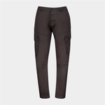 These RJ Engineered Utility Bottoms serve comfort and style with the mix of fabrics, and tapered leg. A cargo-style flap and pockets on the sides and fabric panels at the knees.