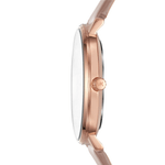 This 38mm Pyper watch features a white sunray dial with rose Gold-tone stick indexes, three-hand movement and mocha leather strap.