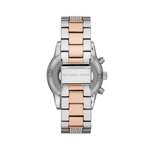 This 37mm Ritz watch features a silver sunray dial with rose Gold-tone crystal-embellished stick indexes, glitz topring, chronograph movement and two-tone pavé bracelet.