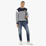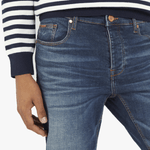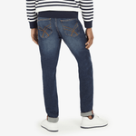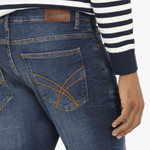 These Fabiani Milano Slim Leg Denim Jeans in Indigo are made from stretch cotton for a comfortable fit in an Indigo shade that gives them a classic denim feel. Decorative back pocket stitching detail and subtle fading give them an effortless look. They have a slim leg for a sleek silhouette that works with just about any top from polos to T-shirts.