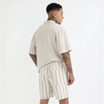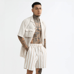 Up your drip with these Markham Fresh Drip Stripe Shorts in Natural. These casual pull-on shorts are made from a soft Rayon blend and feature a comfortable elasticated waistband with an adjustable drawstring and side pockets.