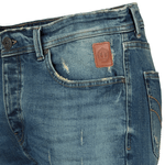 Lend an effortless, laid back look to your casual style with these Fabiani Napoli Rip & Repair Light Blue Denim Jeans. These skinny jeans for men are crafted from denim with a hint of stretch for comfort that has been expertly distressed and washed for an easy-going, worn-in style. Fabiani detailing on the tan leather waistband patch and pocket hardware elevate these everyday jeans.