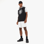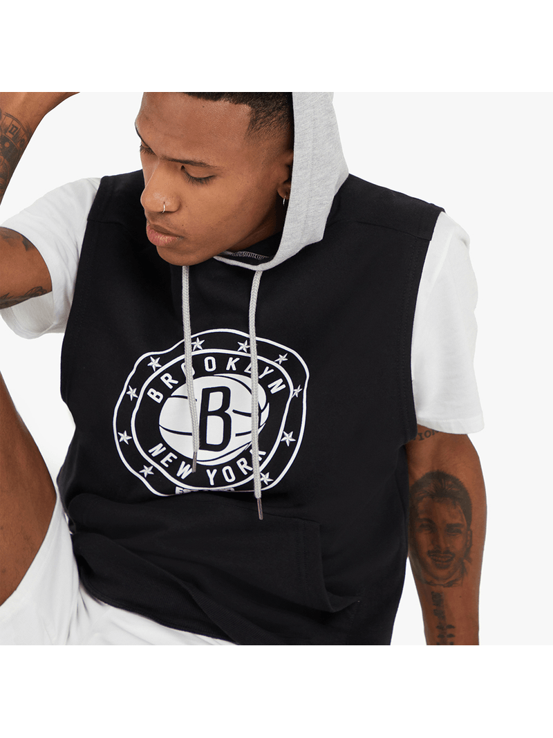 This official NBA Men's Icon Warrior Basketball Retro T-Shirt in Black is made from a cotton blend in a short sleeve, crew neck style with a hood. This tee has a standard fit and features the Icon Lakers logo printed on the chest. Supplier Code_123-00055-NBA NETS BLACK.