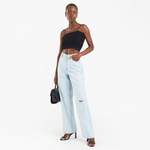 These high waist flare leg jeans with rip details are a versatile pick for a chic weekend look. Pair these high waist flare leg jeans with a cute cami or pretty top. Flare leg fit, High waist, Stretch denim, Medium wash, Five pockets, Zip up with button, Rip details