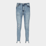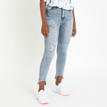 Classic skinny leg jeans are a wardrobe staple. These skinny leg jeans with rip detail and frayed hems are ultra comfy and stylish, perfect for laid-back weekends. Skinny leg fit, Stretch denim, Snow wash, Five pockets, Zip up with button, Rip detail, Frayed hems, Available in plus size