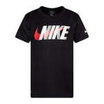 This Nike Kids Swoosh Block Tee in Black has short sleeves in a classic crew neck style. This everyday t-shirt is great for busy youngsters on the move and features a Nike Swoosh logo in white and black printed on the front with a smaller white Swoosh printed on the sleeve. Supplier style is (86H412-023).