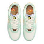 These Nike Air Force 1 '07 LX Women's Gold & Green Sneakers are a fun and sustainable take on the classic AF1 style. The canvas upper is packed with texture contrasts alongside the Swoosh and heel tab that are made from pineapple leaf fiber. These unique sneakers feature an embroidered pineapple patch on the tongue and a cork infused rubber sole. Colour speckled cork liners complete the quirky style. Supplier style is (CZ0268-300).