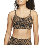 This Nike Women's Indy Glitter Leopard Print Strappy Bra is made from a stretchy and supportive poly-spandex blend with subtle glitter detail in the leopard print for a glam finish. Breathable mesh fabric on the chest offers cooling airflow while a back mesh panel does the same. The multi-strap back adds interest to this functional piece. A Swoosh logo on the chest completes the style. Supplier Code_DD1387-256 .