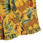 These shorts feature a beautiful yellow animal jungle print, elasticated waist and ruffle design. Pair with the matching top for the cutest look!