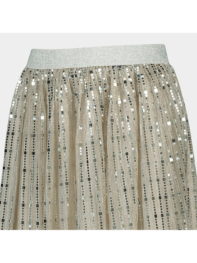 Skirt & top set, Glitter fabric skirt, Elasticated waistband, Long sleeves, Shoulder gather detail, Round neckline