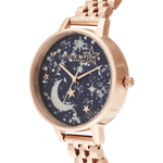 This celestial-inspired Olivia Burton ladies watch is simply dreamy. Its rose tone case houses the most dazzling night-sky dial and is complemented by a chic rose toned bracelet strap. The ultimate addition to your collection.