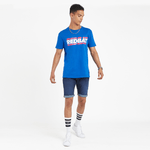 This Redbat Men's Graphic Tee in Blue is made from lightweight and breathable cotton in a regular fit, crew neck style. It features a Redbat repeat graphic printed across the chest in red and white. Redbat is available exclusively at sportscene.