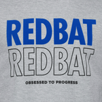 This Redbat Men's Repeat Logo Tee in Grey is made from lightweight and breathable cotton in a regular fit, crew neck style. It features the iconic Redbat 'Obsessed To Progress' slogan printed across the chest in blue and black. Redbat is available exclusively at sportscene.
