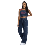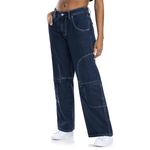 These Redbat Women's Fenty Deconstructed Dungaree-Style Bottoms in Raw Denim have a distinctive retro feel with their wide-leg cut and white topstitch detail. The exaggerated leg pockets and oversized pocket loop make a statement. They're made from unwashed raw denim for an authentic old school feel.